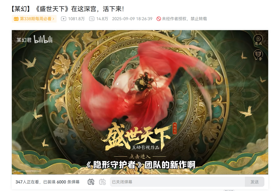 作为影视和游戏领域分别兴起的新赛道,短剧与互动影游显现出“强强联合”的趋势。《盛世天下》超六成演员来自短剧行业。饰演辩积的梓渝就是从2000份简历中脱颖而出的短剧演员,他的加盟还吸引不少观众成为新游戏玩家。许多优秀互动影游作品都是由影视领域龙头企业牵头创作,而快速发展的短剧行业也吸引了不少游戏企业,完美世界出品的短剧《夫妻的春节》已拿下5亿播放量的佳绩。不过,相较于短剧行业的快消模式,互动影游展现出更强的IP生命力。《盛世天下》的用户平均停留时长达到12小时,是传统短剧的6倍,大幅延长了作品的生命周期。