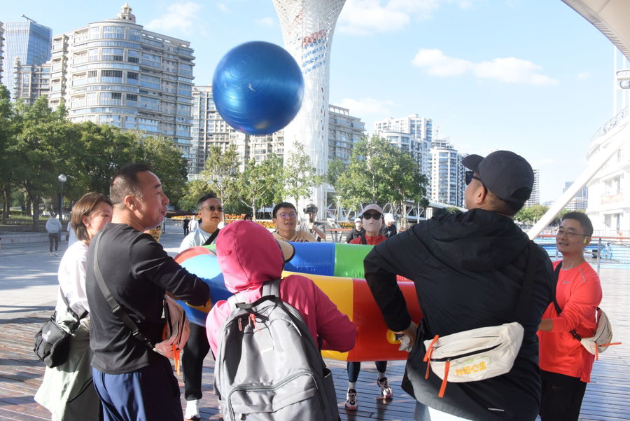 本次健步走活动以徐汇滨江为起点,设置往返五公里的专属路线。沿途精心布置了心理拼图、阳光宣言叠叠高、协作颠球三大趣味打卡点,让职工们在徒步健身的同时,通过互动协作释放压力、增进情谊。