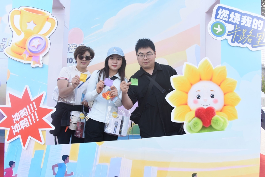 活动装备包中创意十足的“透卡”也备受青睐,职工们举起印有吉祥物“向小阳”的透明卡牌,将滨江美景纳入其中,定格专属美好瞬间。